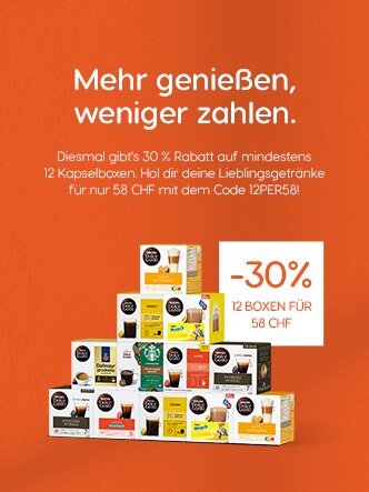Kaffee, Tee oder heiße Schokolade? Mit NESCAFÉ® Dolce Gusto® Kapseln genießt du im Handumdrehen dein Lieblingsgetränk! Von herrlich cremigen Espresso-, Lungo- oder Milchkaffees über leckere heiße Schokolade in Kapseln bis hin zu erfrischenden Teesorten. Jetzt unsere Kaffeekapseln bequem online von zuhause aus bestellen.