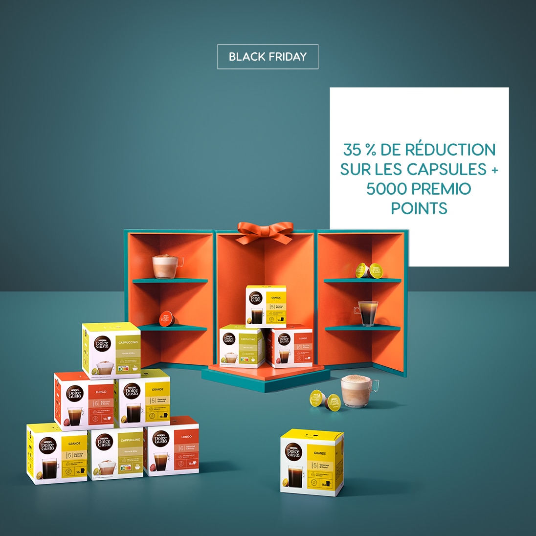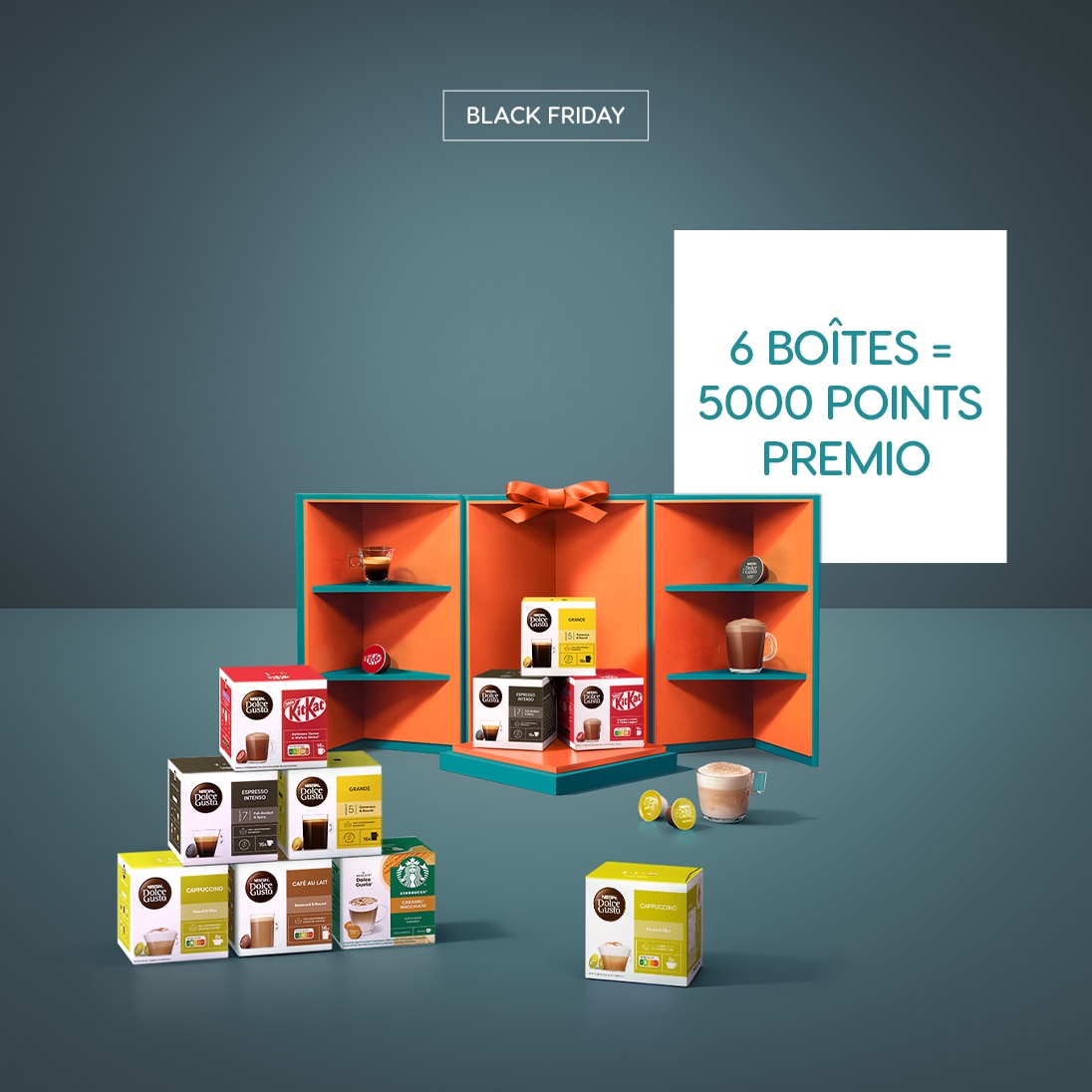Achetez 6 boîtes de capsules, saisissez le code BFPREMIO lors de votre commande et recevez 5 000 points PREMIO sur votre compte.